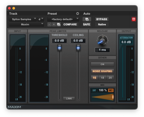 Especially for those who begrudge the mastering phase, Maxim is your best friend. The interface is incredibly easy to use for beginners and pros alike, allowing you to push the power of your tracks without risking distorting or clipping. A full mastering pass of your track while monitoring the attenuation meter is also an excellent way to build ear training into your routine.